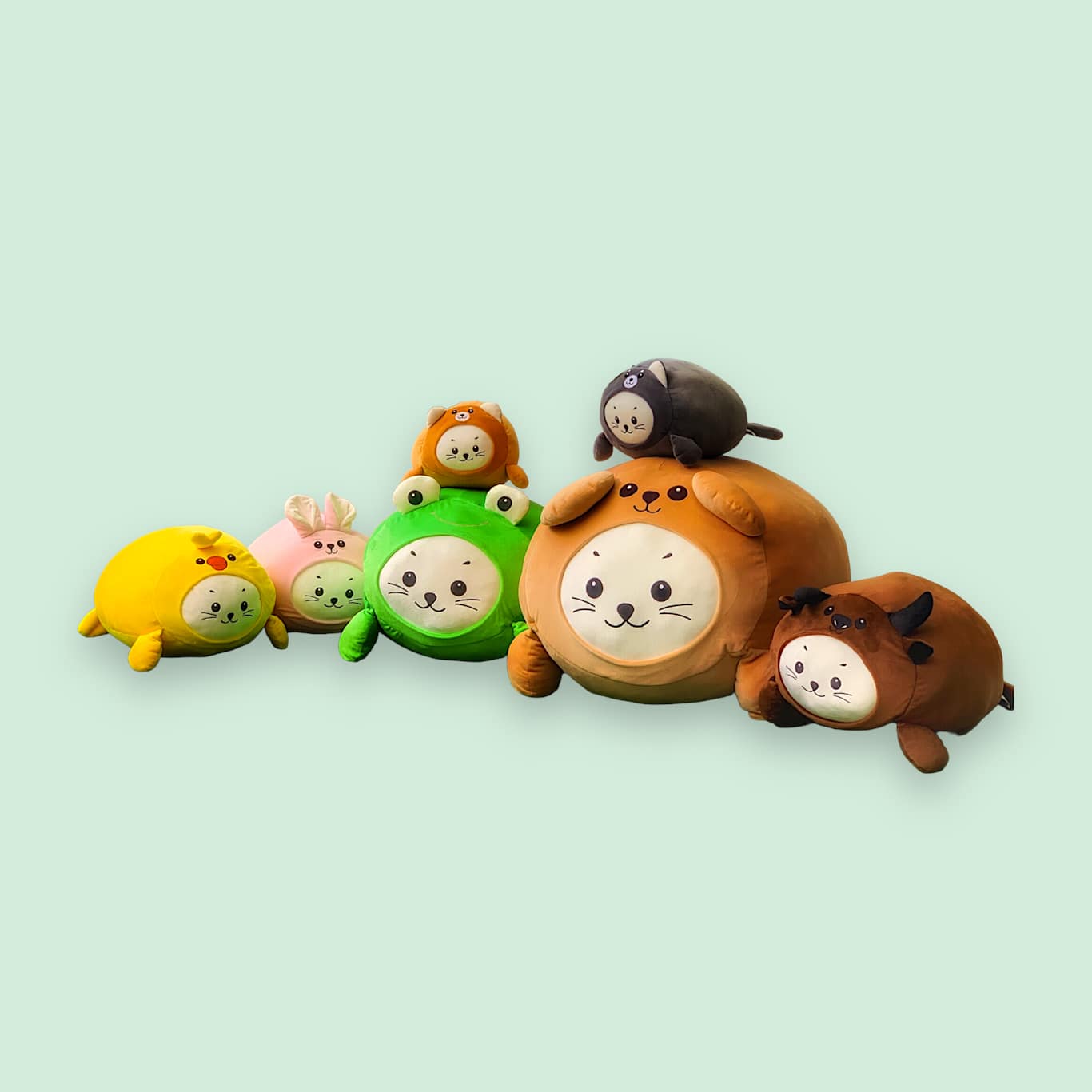 C hristmas version of 2020 stuffed toys has a couple different types. This is one of them. They have a unique character with long arms and legs which was thoughtfully designed by our creative designer. It was a big hit during 2020 Christmas and even now in 2021 as well. They have multiple colors. The green base color represents a Christmas Tree style stuffed toy. The white one is a snowman wearing Santa Claus Hat with green scraf. Lastly the brown is a Christmas Reindeer with green scarf as well.