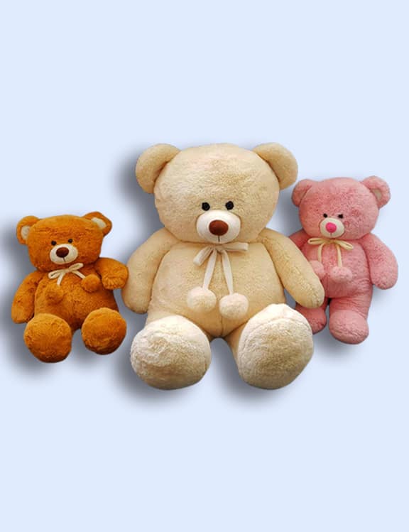 Gio Bear can be made in many colors depending on what you want and the color of the fabrics available during that time. The size of this stuff animals can also be created in many different sizes according to your request. The minimum order for a mass menufacturing is also depending on each size. The smaller the size the more number the orders needed, for example size 18" is 300 in 1 color. If you want to order them more than 1 color, the minimum required per order is 200 each color. However this is still negotiable though depending on terms and conditions during that time.