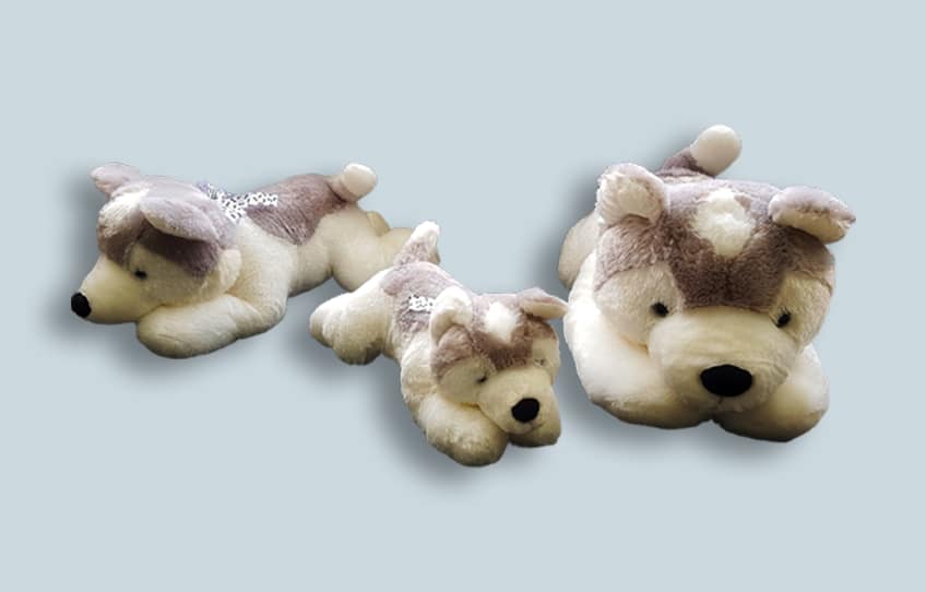 S iberian Husky is one of the most demanded stuffed dogs in the stuffed dog family. This one is made of synthetic fur fabric which makes it very soft. It comes with a dotted scarf. The adorable sense that was creativly designed but it still keeps a bit of reality look. The husky stuffed dog also come with different style as well such as the one made with spandex fabric that will gives you another different feel. We have many types of stuffed dogs such as bulldog, shiba, bull terrier, or rottweiler. Whatever type you need, we will wholeheartedly design and deliever it to you.