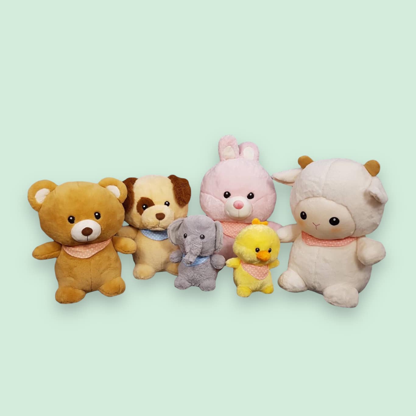 There are 6 Types: Rabbit, Dog, Duck, Elephent, Bear, Sheep