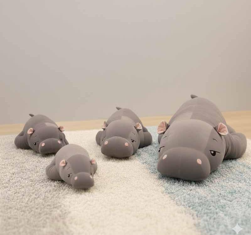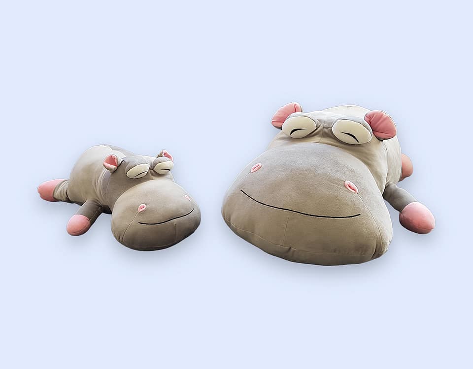 ตุ๊กตาฮิปโปชนิดต่าง ๆ หลากหลายชนิด รวมถึงชนิดของผ้าที่ใช้ทำและขนาดที่แตกต่างกัน